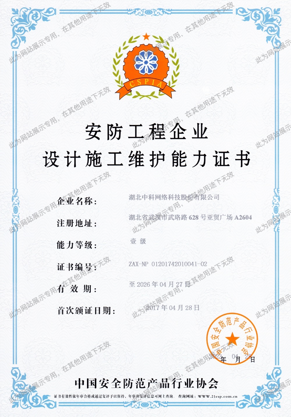 • 國家建筑智能化系統(tǒng)設(shè)計專項甲級資質(zhì)
